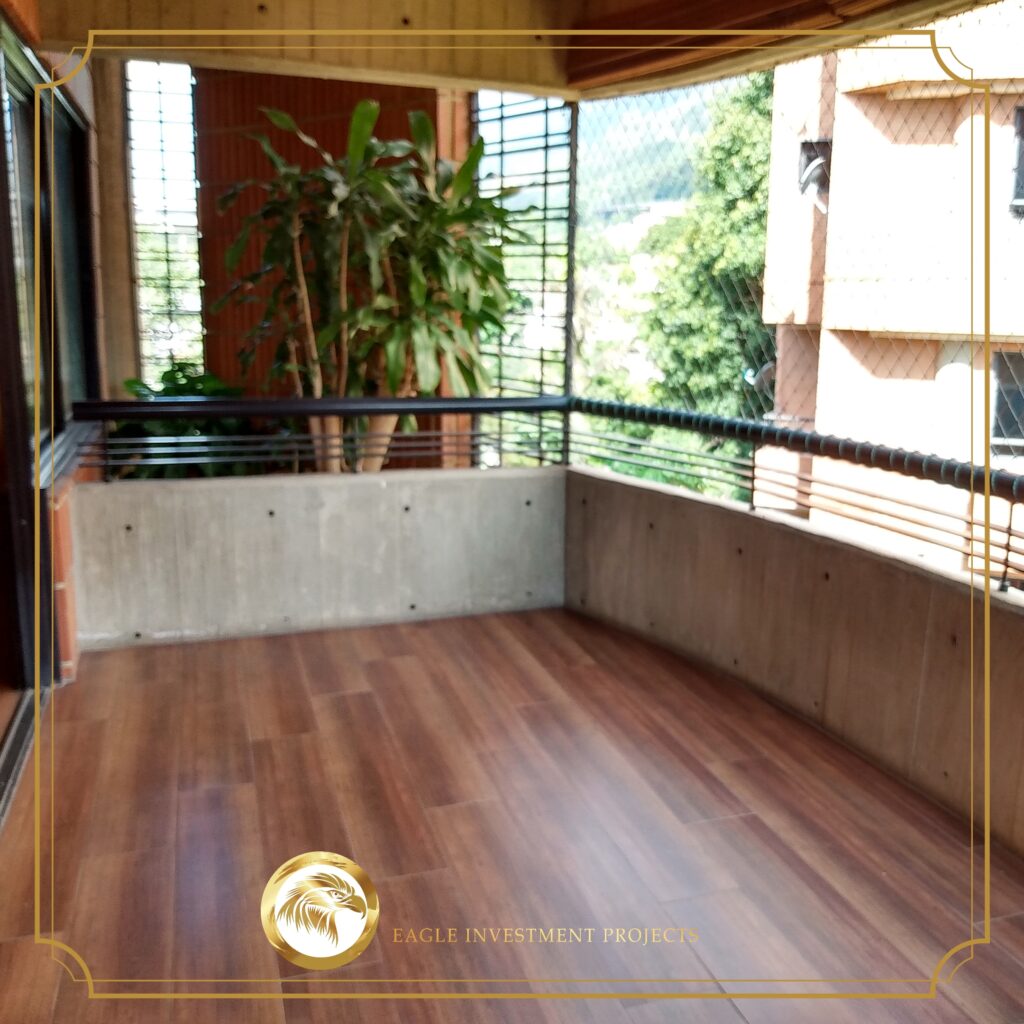 Amplia sala – comedor, baño de visitas y balcón techado con vista al Ávila.