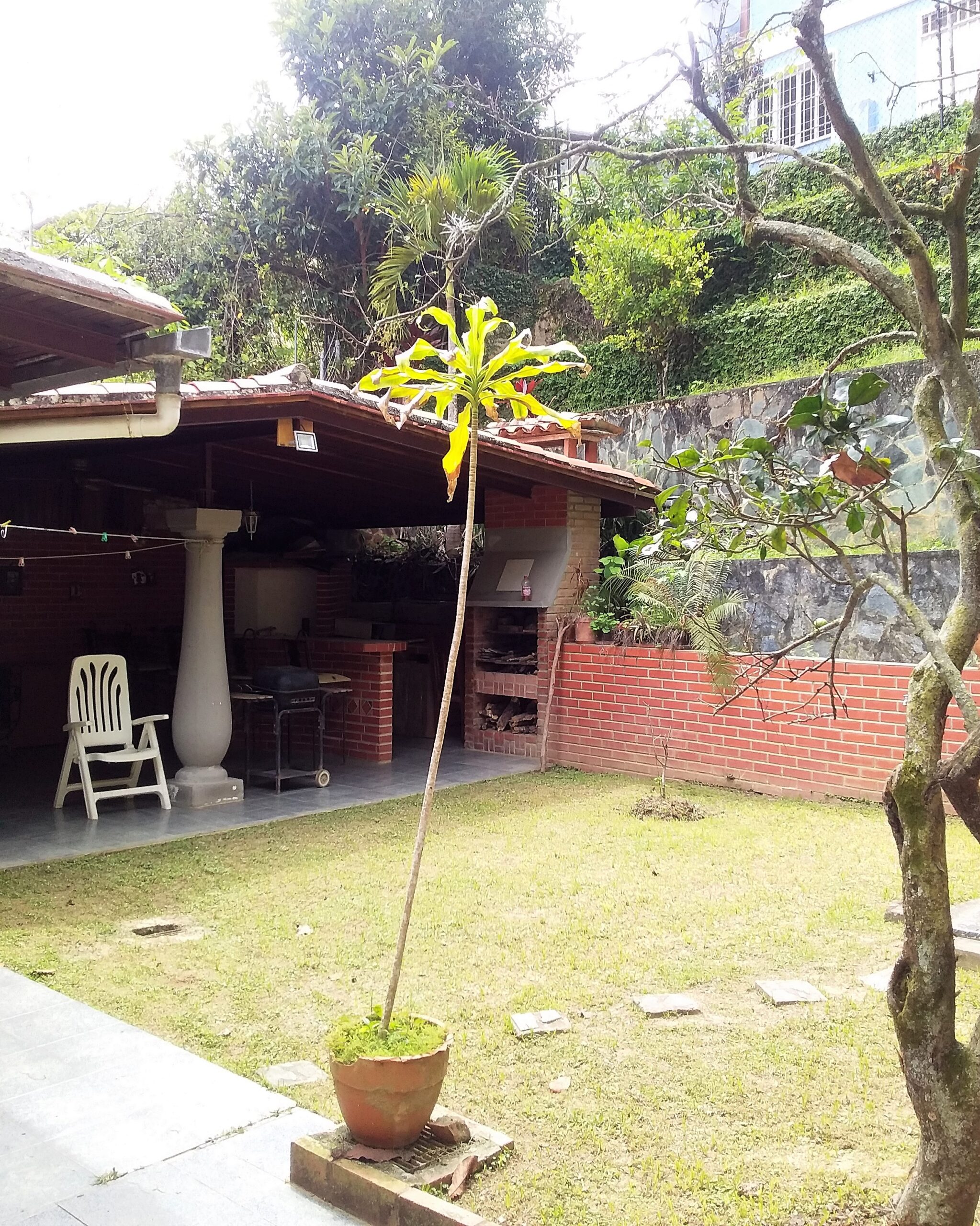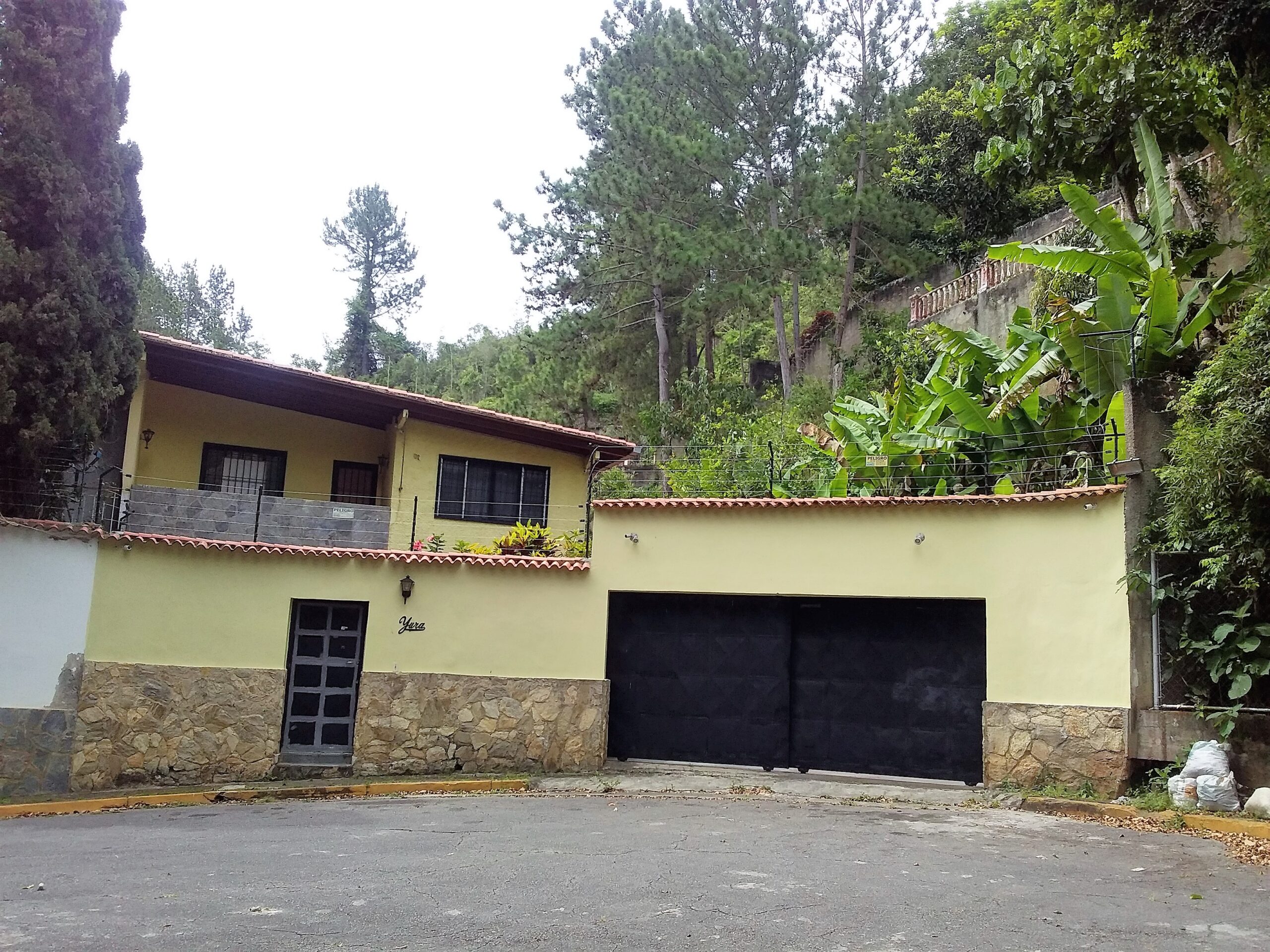 Jardines anterior y posterior. Tiene un gran terreno lateral terraceado con muros contención de concreto, con árboles frutales.