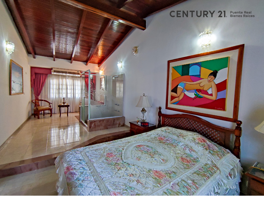 Habitación principal que posee dos baños internos, pequeña sala de lectura con balcón que da vista al canal y vestier.