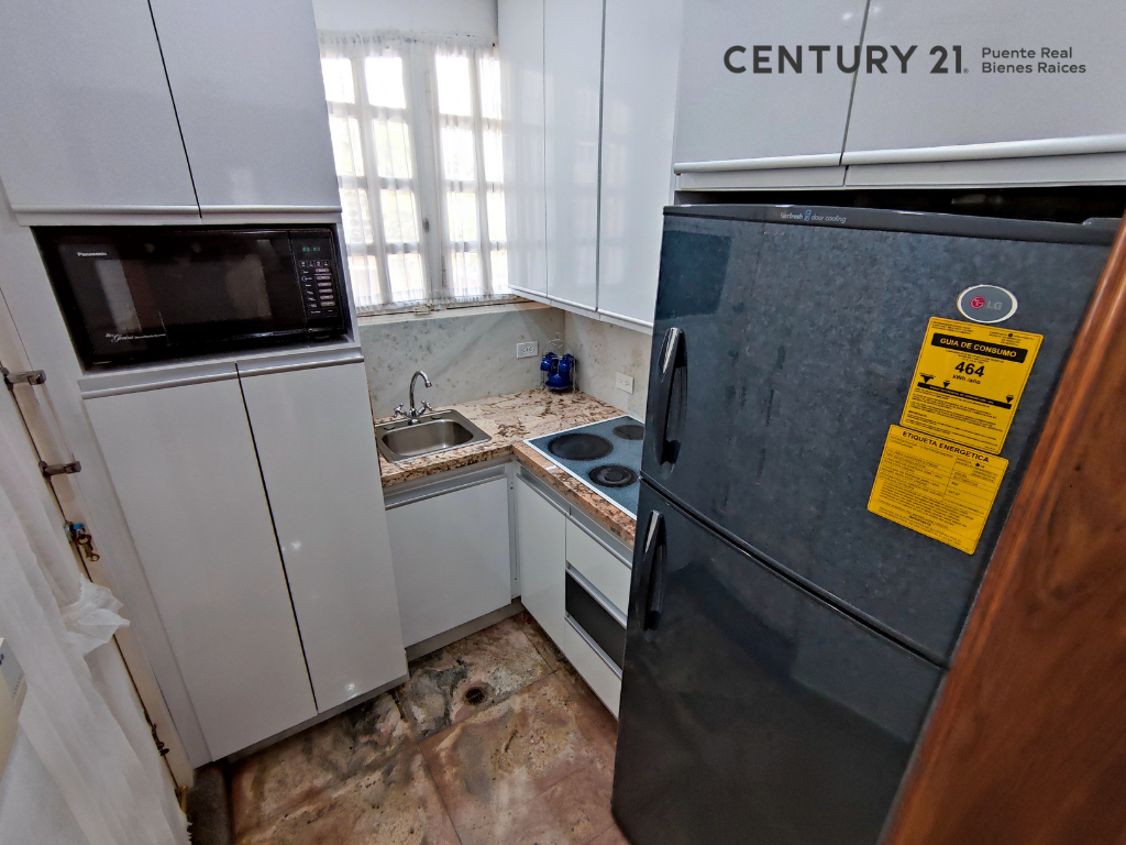 Cocina totalmente equipada con desayunador y tope de granito más área de lavado .