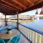 Espaciosa casa bote tipo palafito en alquiler en el conjunto residencial Aqua Villas, Casas Bote A, del Complejo Turístico El Morro. Esta propiedad de dos niveles asentada sobre 18 pilotes y situada sobre parcela tipo abanico de 400mts2 y de aproximados 450 de construcción techada se ofrece totalmente amoblada y equipada, contando además con revestimiento de piso de granito en casi todos sus espacios y climatizado con AA en cada ambiente.