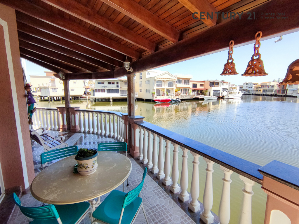 Amplio muelle para embarcaciones de hasta 50 pies, y terraza techada con vista al canal navegable, área de parrilleras.