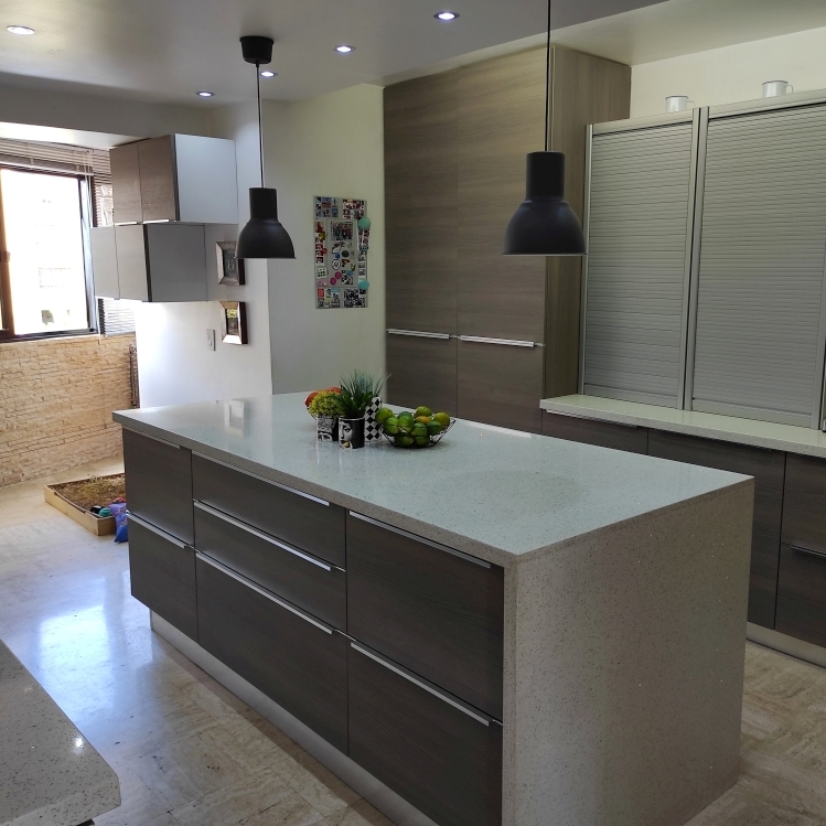 Area Cocina: Cocina de buen tamaño, de diseño sobrio y contemporáneo, con isla central/pantry. Piso de mármol. Habitación y Baño de servicio.